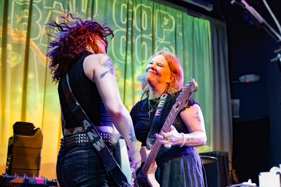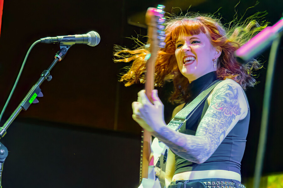 Guitarist Alex Windsor joined the band a few years back, and flares her red mane about whilst she does backbends with her guitar that would cause this author a month’s stay in physical therapy. And Myra Gallarza has been pounding the skins as the longtime drummer for the band since its inception. When these four tour, it’s clear they are there to rock out, and also clear how much they enjoy what they are doing up on that stage. Their interactions are joyful, exuberant and simply fun.