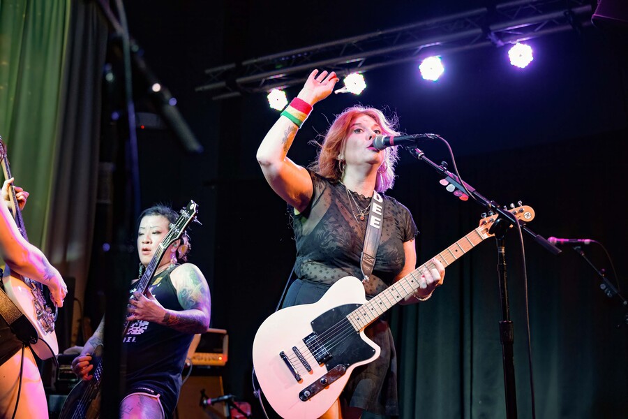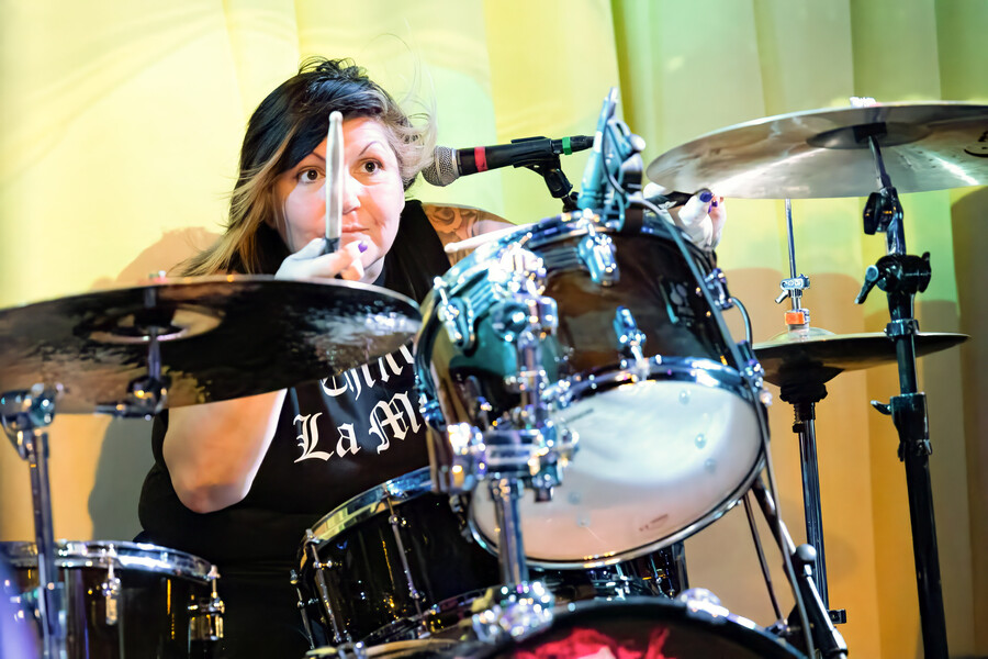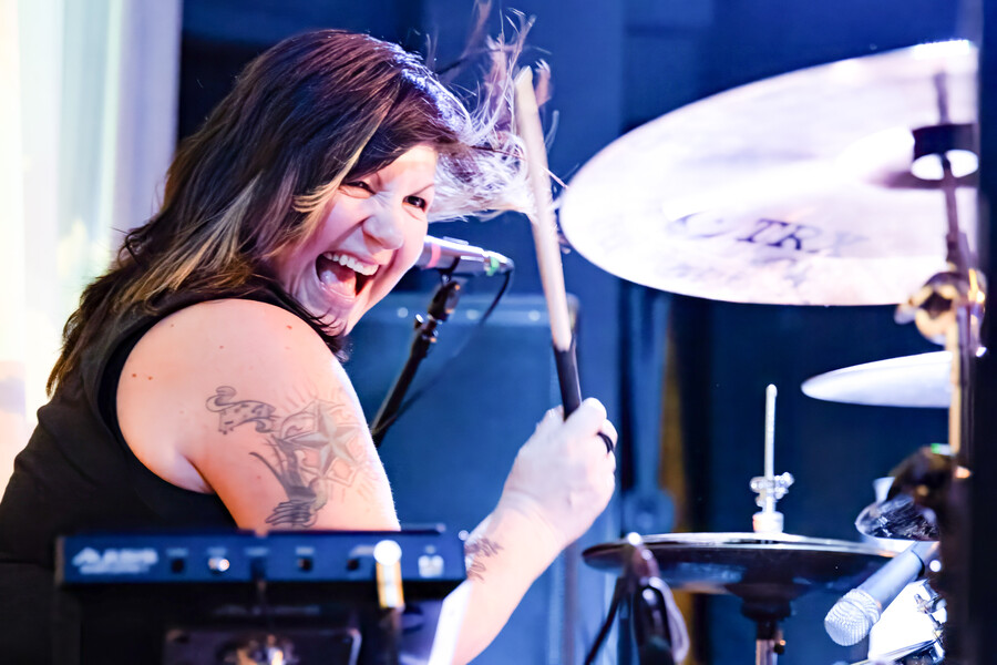 Though the band works as a cohesive unit, it is led by Stacey Dee, who announced during the third song of the evening, “Breastless” that she was now breast cancer free for 6 years. Her distinctive growl takes us through what was in her mind upon learning of her original diagnosis and her strength in dealing with the process of fighting through her treatment and coming out stronger on the other side. “Straight Out of Detox,” another song off of the new album, confronts Dee’s battle with substance abuse, how it affected relationships and coming out better on the other side of that battle.