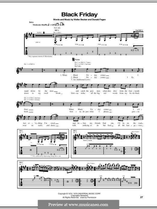 “Black Friday” can be found on Steely Dan’s album “Katy Lied” (1975, ABC Records). Rod MacDonald’s folk song about the modern Black Friday shopping experience is on his album “Beginning Again” (2018, Blue Flute Music)—proof that fifty years later, it’s still worth singing about.